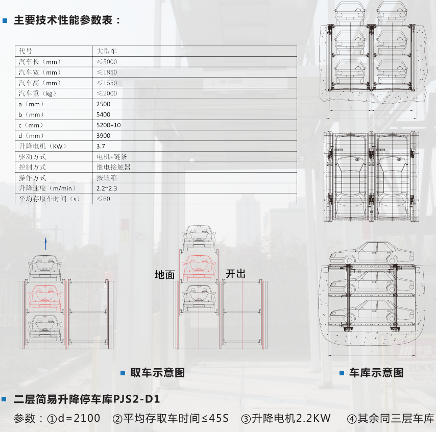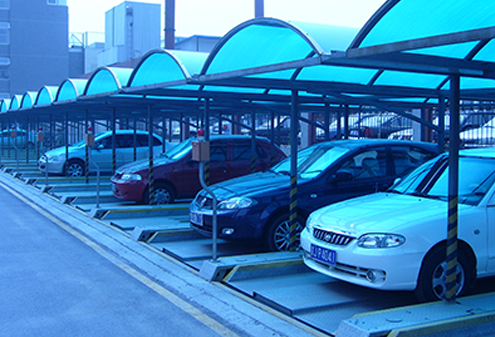 運(yùn)行原理:上中下三個(gè)車位固定聯(lián)成一個(gè)升降機(jī)。平時(shí)沉于地坑,上層(地面)可直接存取車輛,升起后可存取中、下層車。