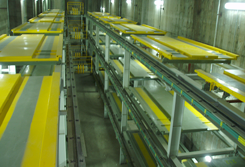 2、升降機(jī)布置靈活——升降機(jī)置于泊位一側(cè)或巷道中央